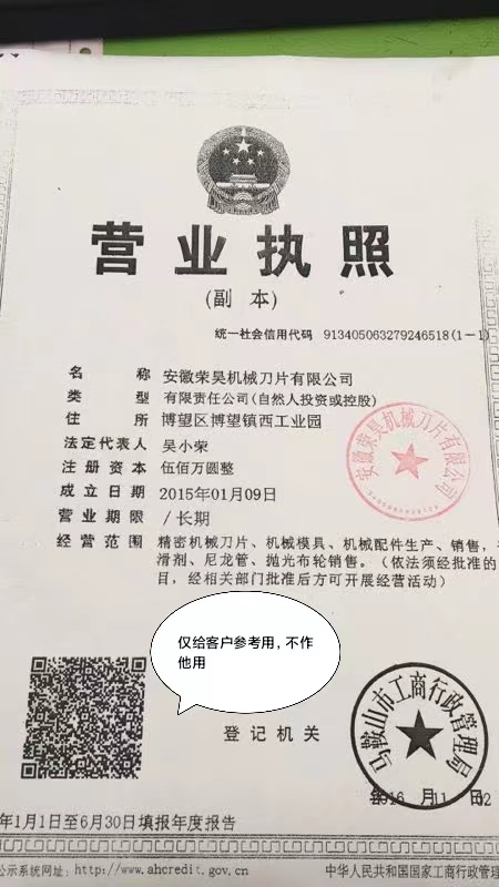 請百度搜索安徽榮昊機械刀片有限公司關鍵詞找到我們!